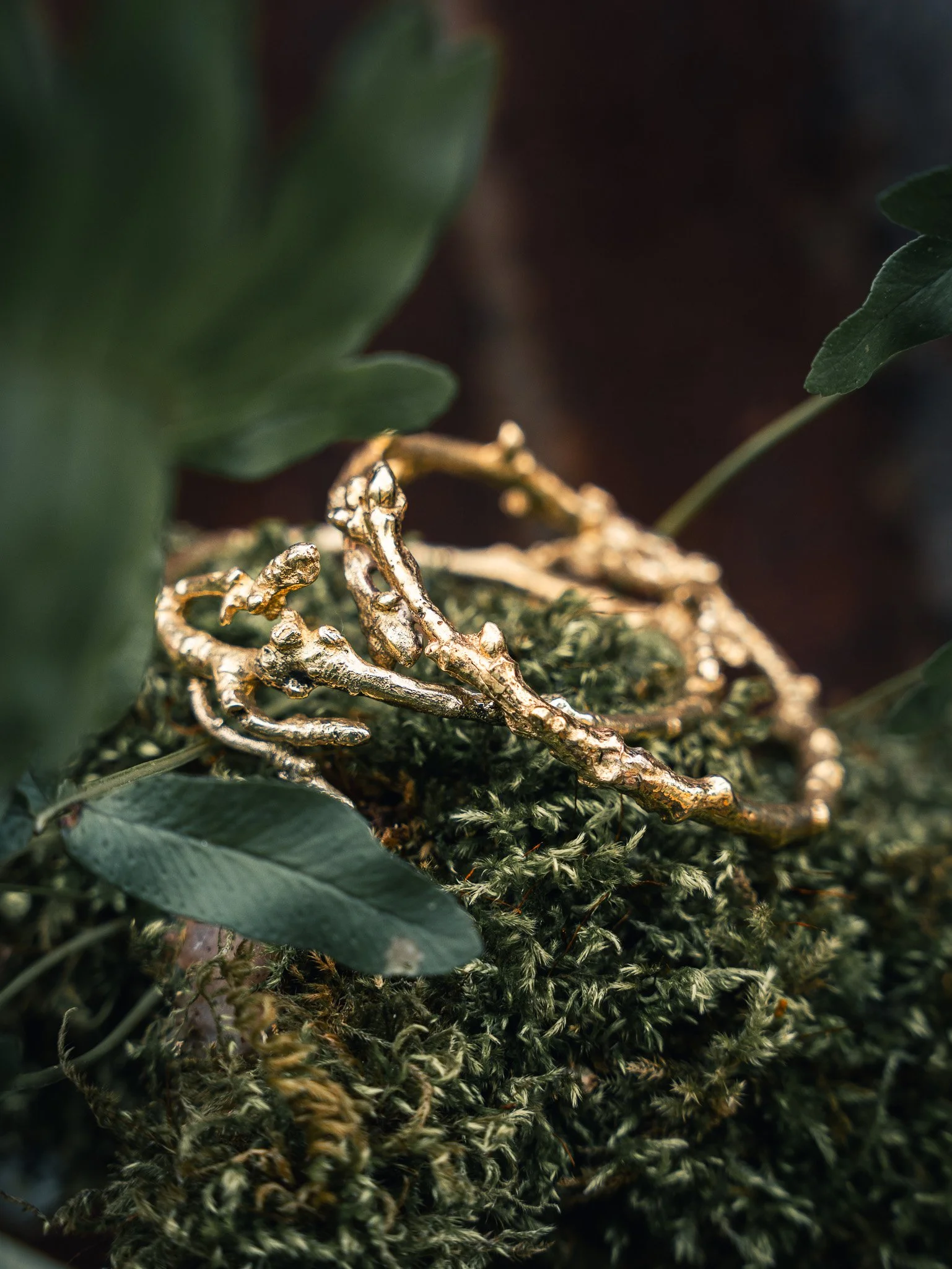 Working like a Modern day Naturalist, Issi gathers specimens from Woodland walks, windswept coastlines and forgotten gardens. These forms are transformed using the ancient art of lost wax casting, capturing every vein & textural quirk. The result is jewellery that feels like its unearthed from a cabinet of curiosity, intimate, otherworldly and timeless.
