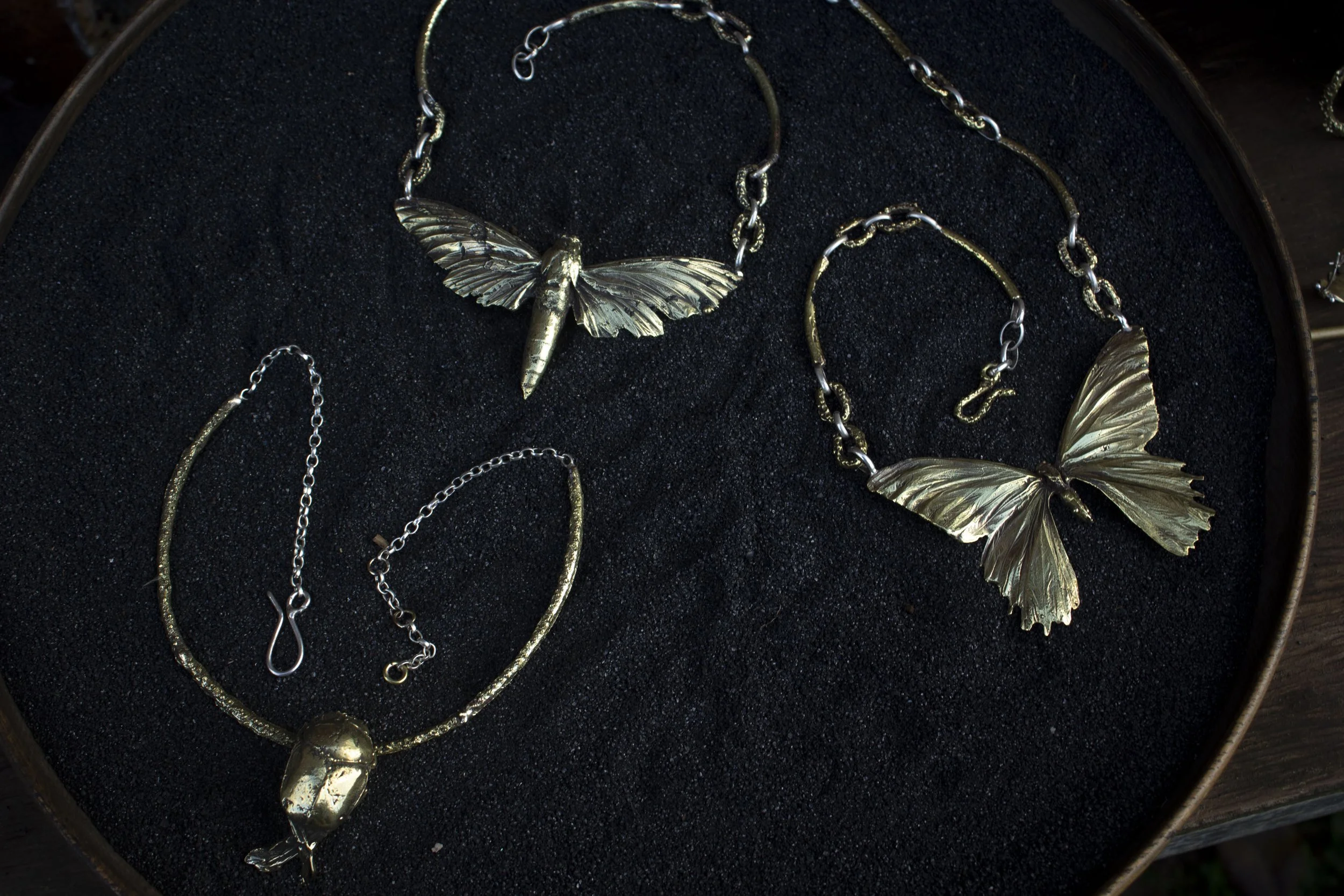 Butterflies, Bugs, Bees & Other Insects Categories: Select a Category Sand Cast Jewellery Fields, Forests & Garden Treasures Kilifi Collection Edible Collection Fern Collection Butterflies, Bugs, Bees & Other Insects Ogham Spoons All Jewellery earrings necklaces rings bracelets Voucher Butterflies, Bugs, Bees & Other Insects Sand Cast Jewellery Fields, Forests & Garden Treasures Kilifi Collection Edible Collection Fern Collection Butterflies, Bugs, Bees & Other Insects Ogham Spoons All Jewellery Voucher Wasp Pendants in Brass and Silver from £120.00 Silver Bee's on Chain £110.00 Brass Bee's on Chain £95.00 Brass Hawk Moth & Chunky Chain in Brass and Silver Fixings £395.00 Brass Butterfly & Chunky Chain Necklace in Brass with Silver Fixings £395.00 Dung Beetle Torque Choker in Brass with Silver Chain £290.00 Small Dragonfly in Recycled Sterling Silver £270.00 Large Dragonfly in Recycled Sterling Silver £400.00 Double Scorpion Ring with Black Opal £490.00 Bee Signet Ring in Recycled Silver £150.00 Bee Signet Ring in Brass & Recycled Silver £150.00 Bee Ring in Recycled Silver with Garnet £185.00 Memorial Bee Rings £360.00 Butterfly Ring Dinky in Brass £80.00 Butterfly Ring Small in Brass on Nettle Ring Band £120.00 Butterfly Ring large in Brass £165.00 Butterfly Ring in Brass with Yew Ring band £165.00 Hawk Moth Rings in Recycled Silver £250.00 Butterfly Ring Small in Recycled Silver £120.00 Butterfly Ring in Recycled Silver £240.00 Butterfly Ring Large in Recycled Silver £240.00 Butterfly Rings in Recycled Silver & Brass £280.00